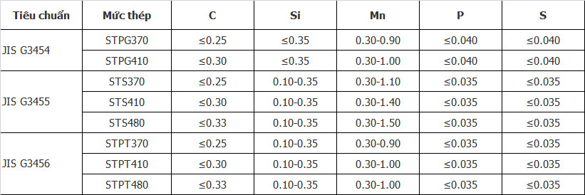 TIÊU CHUẨN - THÀNH PHẦN HOÁ HỌC CỦA ỐNG THÉP ĐÚC