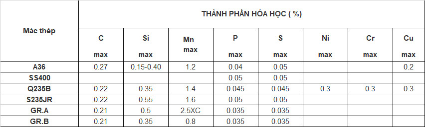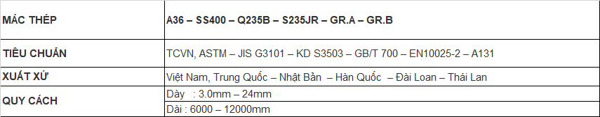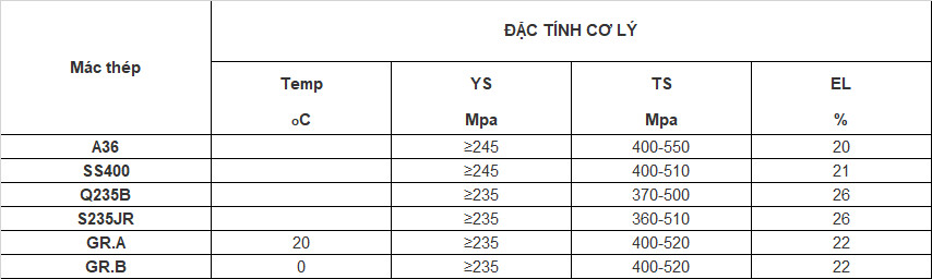 + Tiêu chuẩn JIS G3101, SB410 (mác thép SS400 của Nhật).