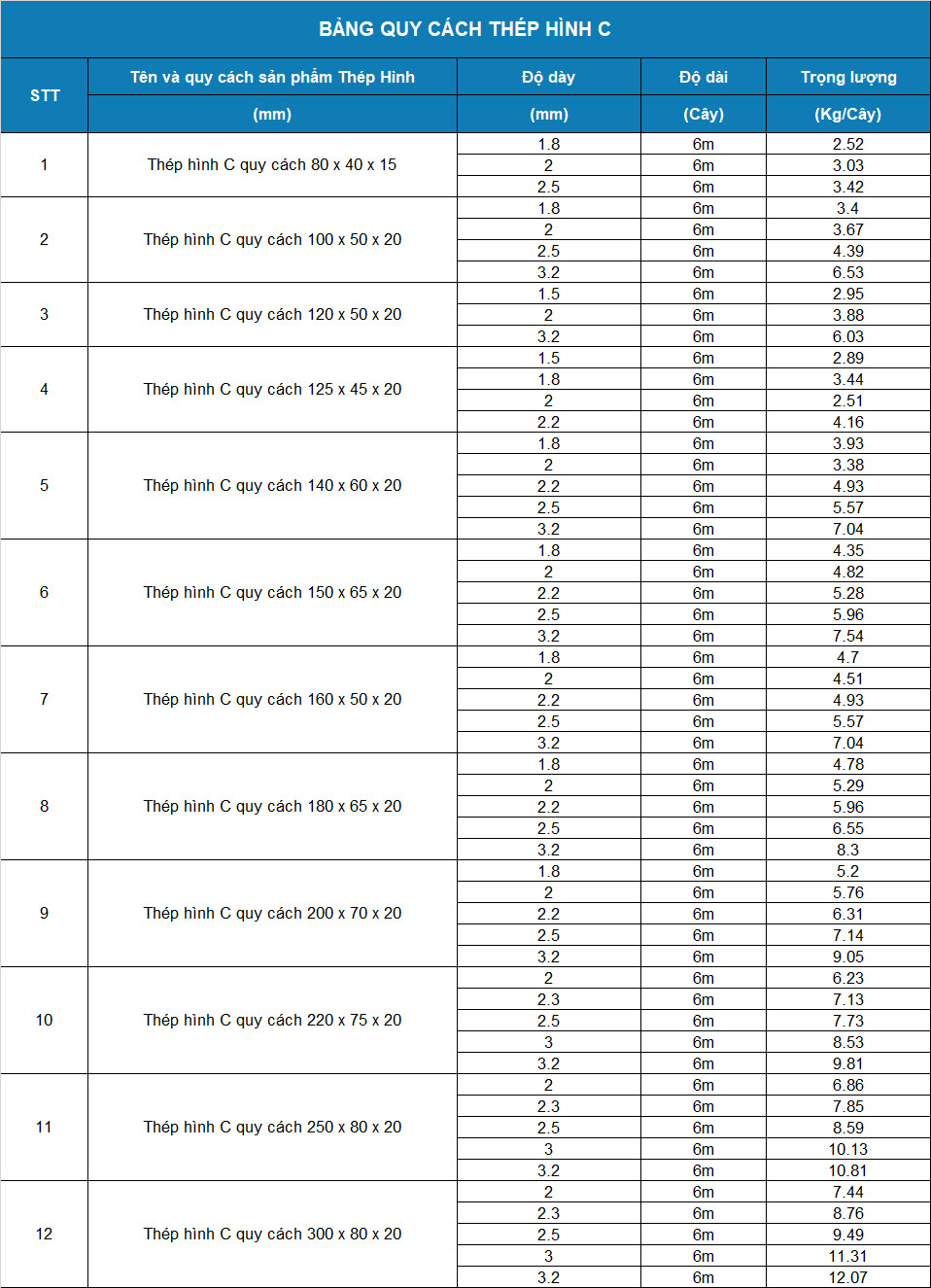 Chiều dài xà gồ c là 6 mét (có thể cắt theo yêu cầu)